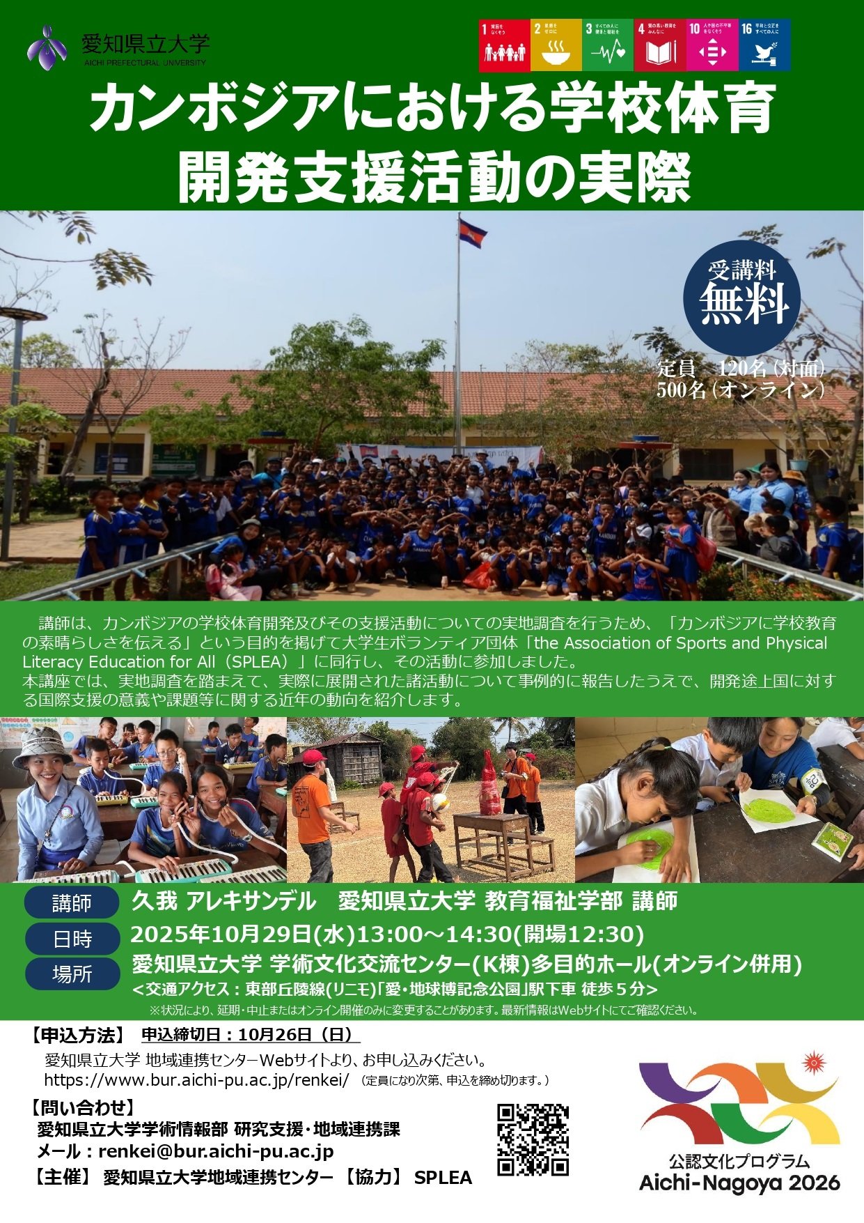 【10/29(水)】<対面/オンライン>カンボジアにおける学校体育開発支援活動の実際(県民講座)