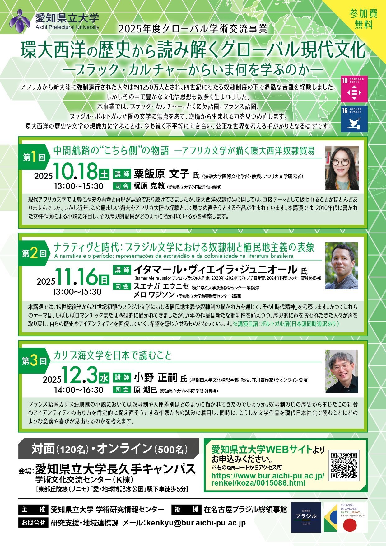 【10/18・11/16・12/3】<対面/オンライン>2025年度グローバル学術交流事業「環大西洋の歴史から読み解くグローバル現代文化 ーブラック・カルチャーからいま何を学ぶのかー」