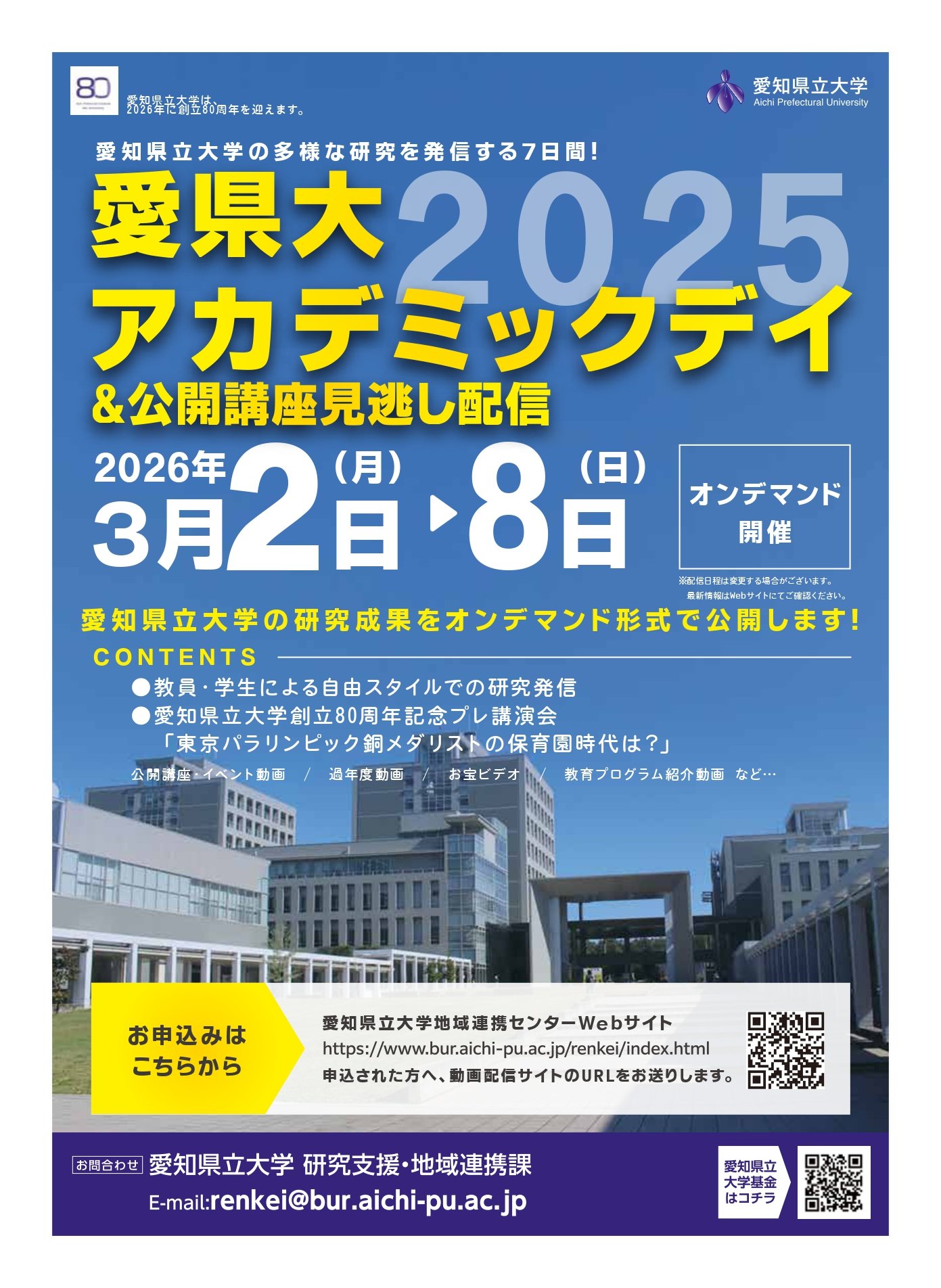【3/2(月)~3/8(日)】愛県大アカデミックデイ2025&公開講座見逃し配信(オンデマンド配信)